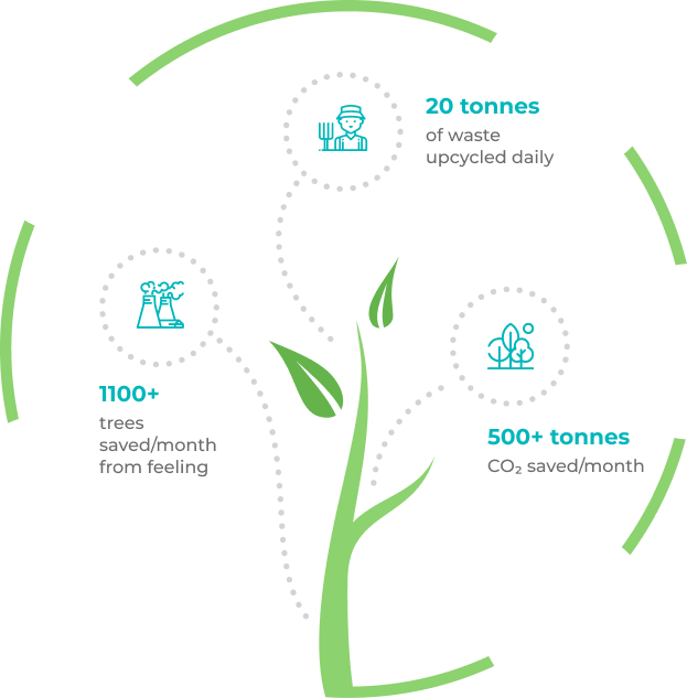Green Building Materials and Eco-Friendly Paper and Packaging made from patented green manufacturing technology, developed by our scientists, using 100% crop residue collected from local farms.